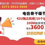 100M独享带宽IDC电信机柜特价低至3600元/月